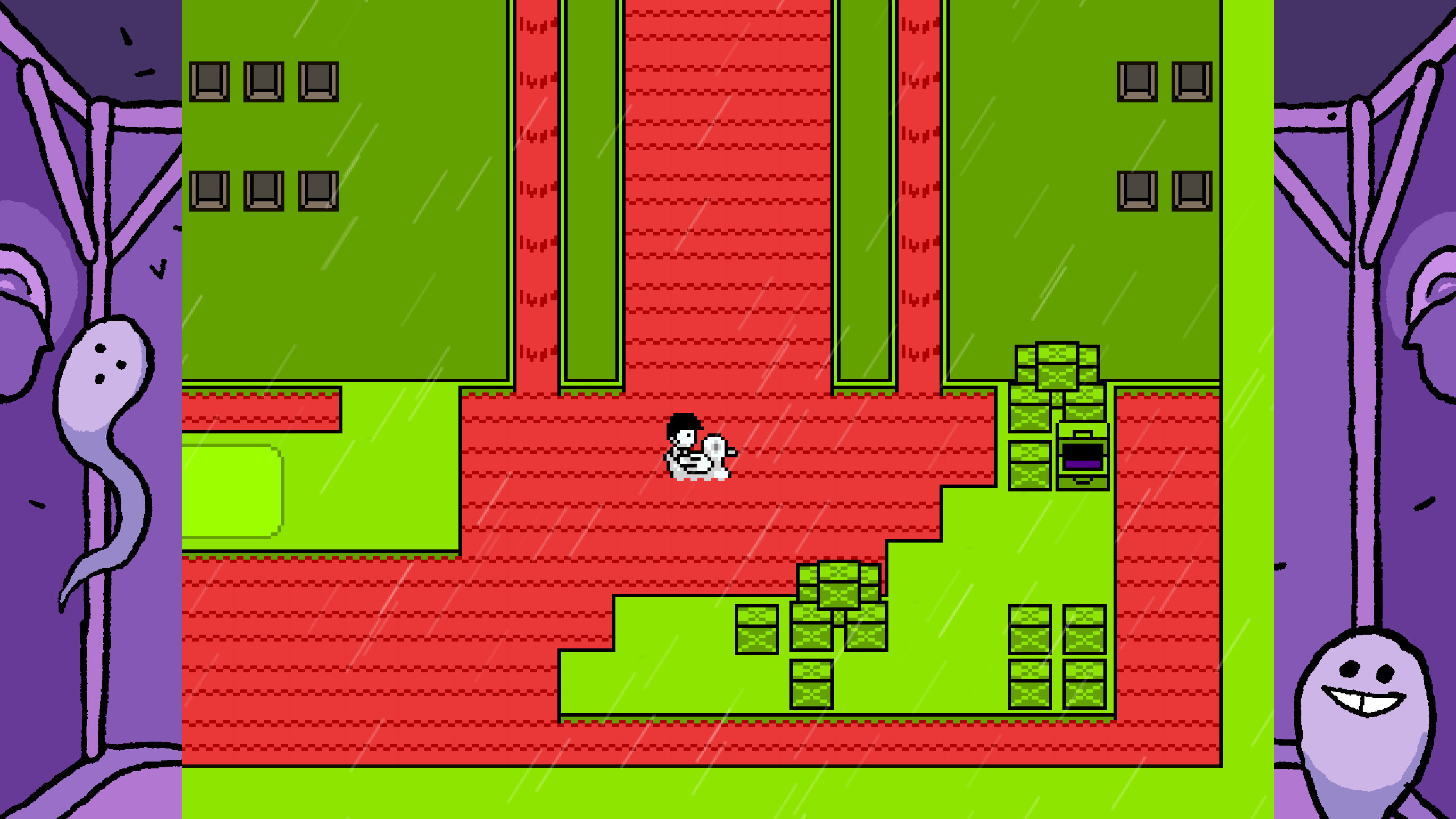І інколи ще й неприємно затримують темп того, що можна назвати “сюжетом”. Хоча, з іншого боку, в OFF не так сюжет в традиційному розумінні, як просто набір атмосферних ситуацій та моментів. В самому кінці гри з’являється більш чіткий сюжет, але до цього речі просто відбуваються. Атмосфера, насправді, виходить дуже класна і гра при цьому прикольно виглядає і має чудовий саундтрек… Правда, тут теж варто зазначити, що саундтрек в новому релізі змінили, бо оригінальний композитор гри не хотів приймати участь в комерційному релізі. Тож, в грі є декілька нових інтерпретацій композицій з оригінальної версії, але в цілому композиції зовсім нові (старі можна безкоштовно послухати на сайті композитора). Нова музика дуже прикольна і я би сказав, що вона в цілому більш консистентно якісна. Але найкращі треки з оригінальної версії були абсолютно неймовірними, і в новому саундтреці настільки ж незабутніх композицій, на жаль, нема.