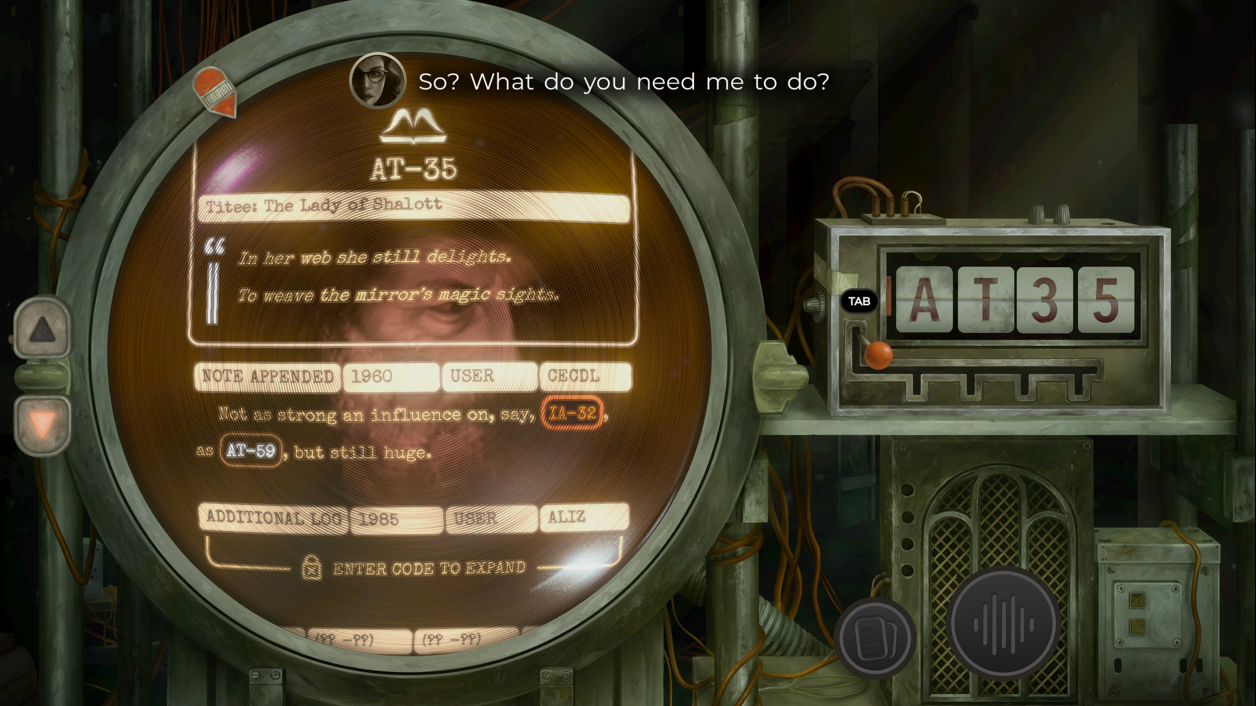 While I didn’t care about most of their projects, inkle have established themselves as a small but inspired team that always tries to find new ways to make narratively driven games mechanically interesting and non-linear. My only proper experience with their titles has previously been Heaven’s Vault, which I found to be highly flawed, but also very cool and definitely unforgettable. With TR-49 the team is doing something that is a bit easier to explain and understand, especially if you have played Her Story and The Roottrees are Dead.
