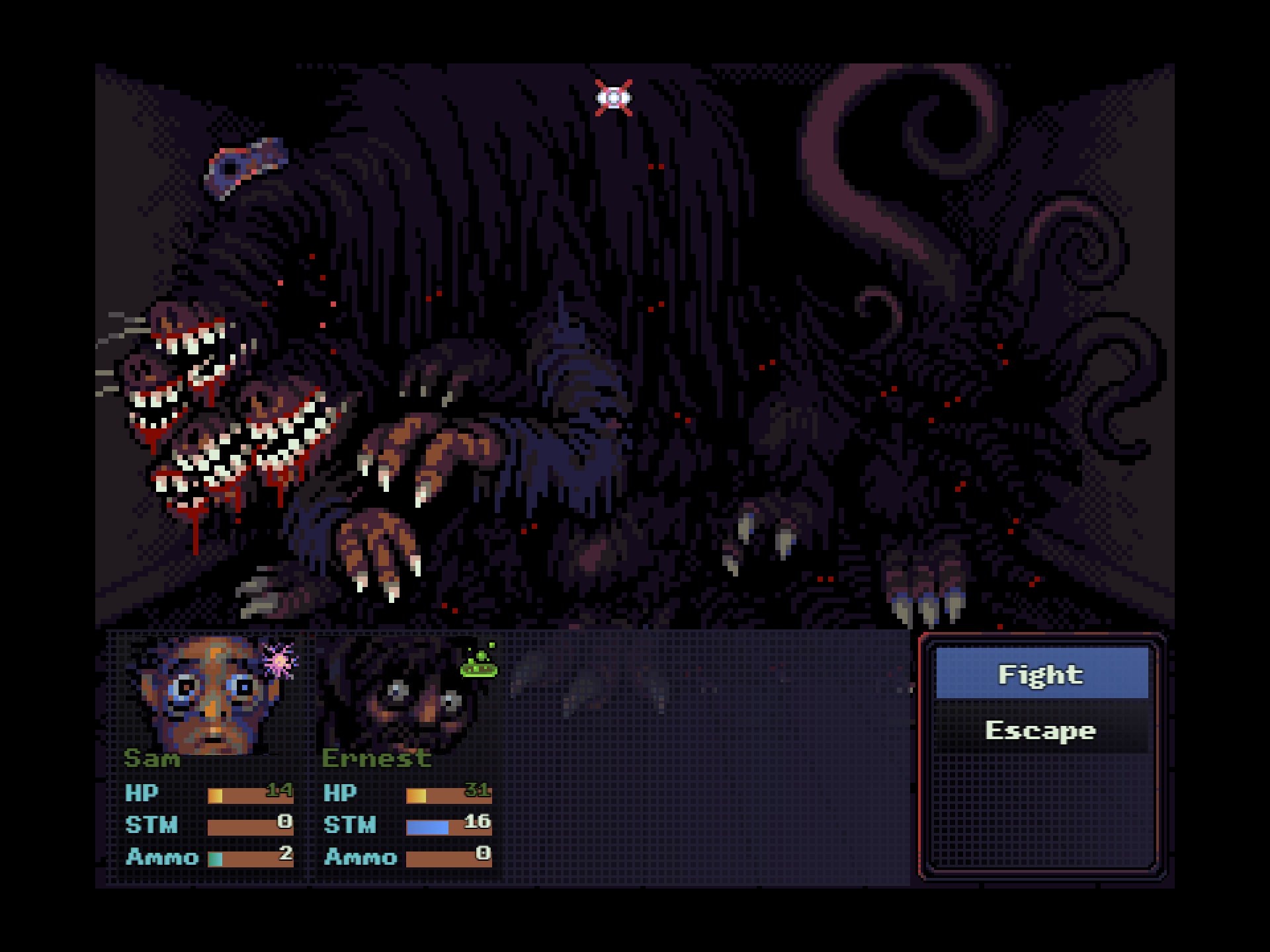 Mechanically, this is a classic Dragon Quest style turn base party based combat game for the most part, so a lot of the basics are easy to understand. But the game does have a few curious changes and additions to the formula. All of the enemies are visible on the screen and you have the option to escape almost all encounters, with the chance to escape increasing the longer you are in the fight, which turns the exploration into something closer to a classic survival horror, rather than an RPG. In many dialogues with NPCs you have the option to initiate the battle as well. Leveling up the characters is important, especially for some of the party members, but equipment tends to play a far bigger role in combat, at least in comparison to a typical RPG or even Sweet Home. The only thing that you cannot do, if you want to get most of the endings in the game, is be entirely pacifist and avoid encounters. Though, if you wish to stay at home and wait it out, that is also an option.