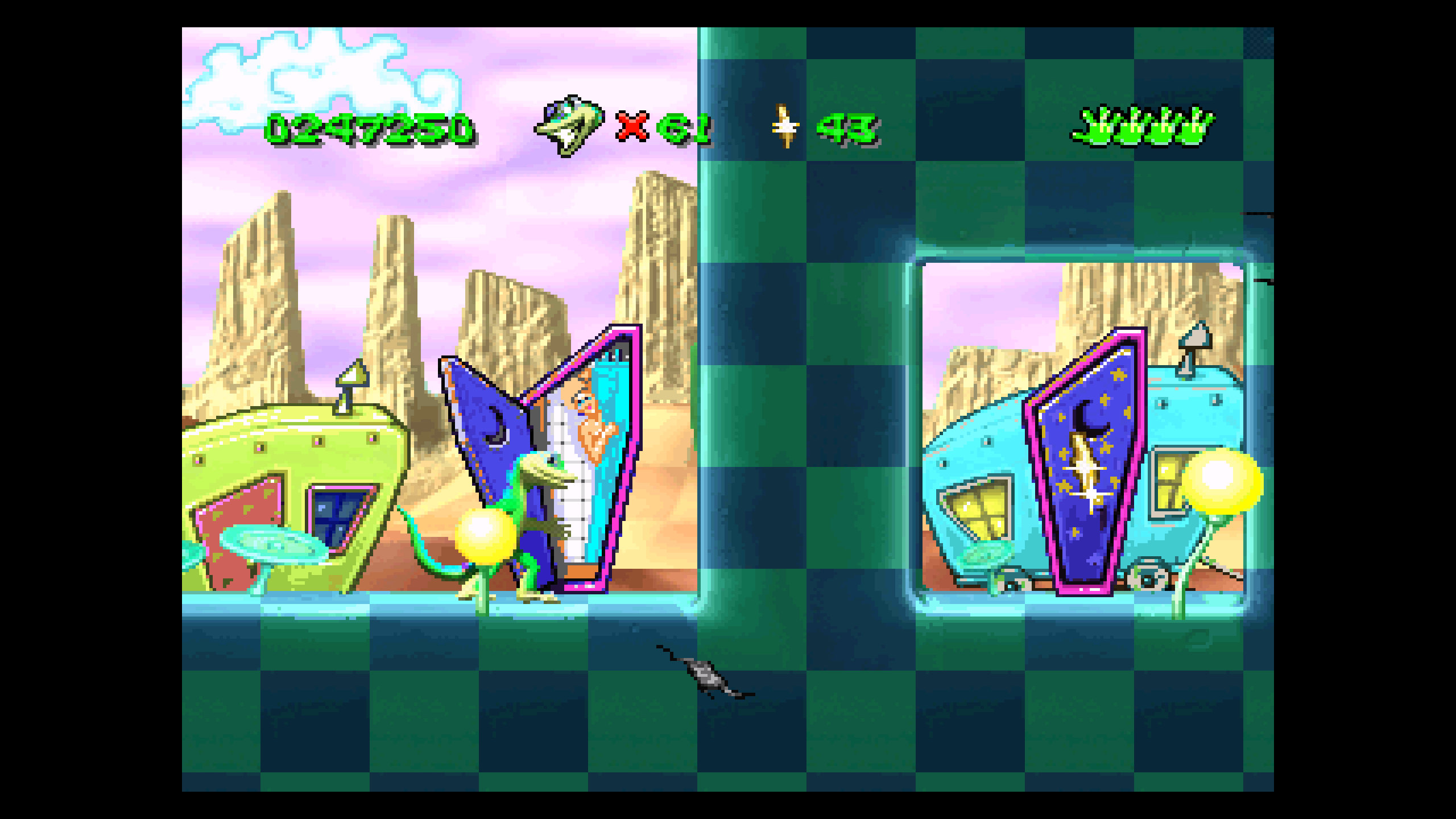 Тому це видання від Limited Run Games має сенс. Хоча проблем в ньому дуже багато. Та я спочатку поясню, що це за видання. Це колекція, яка складається з PlayStation версій кожної гри, які працюють на емуляторі. Gex доступний лише в NTSC версії, тоді як друга і третя частина доступні як NTSC чи PAL версії (бо європейський реліз змінив акторів озвучення). Іншими словами, ця колекція навіть не збирається претендувати на звання “повної”. Перша гра на 3DO була трохи іншою, мала деякі інші візуальні ефекти і декілька з вирізаних рівнів, які були доступні через спеціальний дебаг код, доступні лише там і недоступні на PS1. Enter the Gecko виходила на Nintendo 64, де вона гірше, але має унікальні рівніt. Схожа ситуація і з Deep Cover Gecko, але цього разу N64 версія отримала навіть більше унікального контенту. І це все в Gex Trilogy недоступне, хоча N64 рівні можна подивитись на відео уривками.