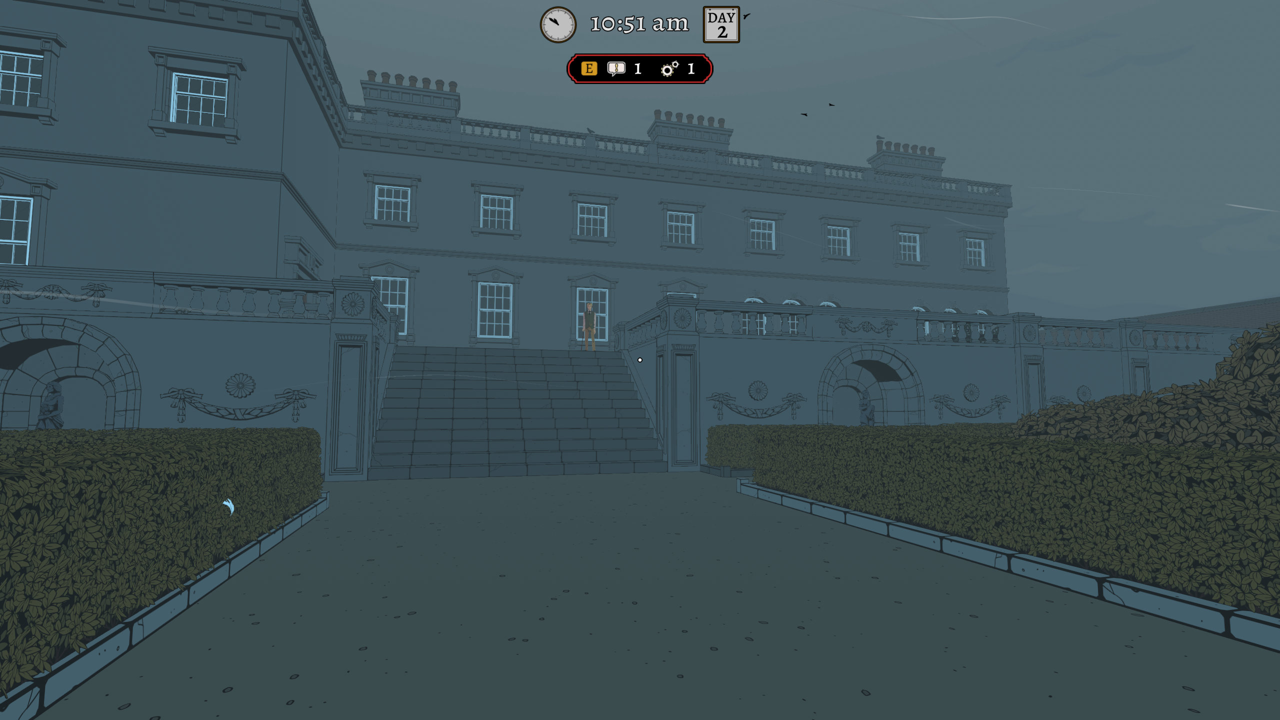 Що на перший погляд виглядає доволі стресовим, і початок гри, який вас навчить всім цим основним механікам, як раз і побудований на тому, щоб пояснити вам про важливість часу, важливість вибору на що ви його витрачаєте, важливість того, щоб не викликати зайвої підозри… Але після цієї вступної частини гра набагато менше хвилюється про все це. І я так розумію, вступ зробили більш напруженим просто щоб сконцентрувати увагу гравців на важливому, бо хоча час перестає бути настільки важливим далі, вам все одно не варто витрачати його просто так. І якщо ви будете грати як обережний та сфокусований слідчий, то зможете вирішити все що треба з запасом в декілька годин до фіналу. Плюс, гра також навчить вас з цим стартом, що саме витрачає час, і що зазвичай краще пройтись по всім доступним локаціям і подивитись які речі ви можете робити, що безкоштовно, а потім вже витрачати час на те, що ви вважаєте важливим.